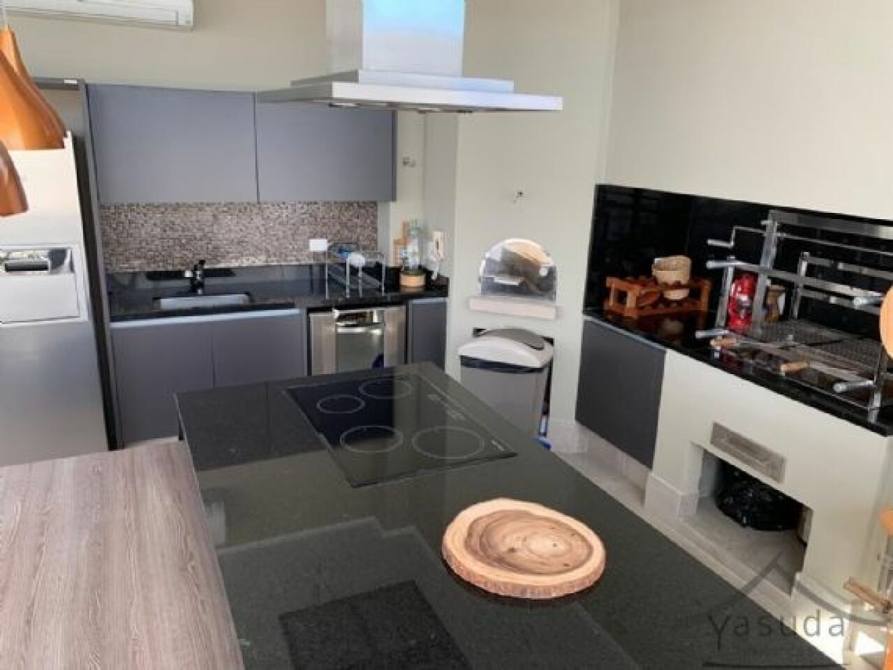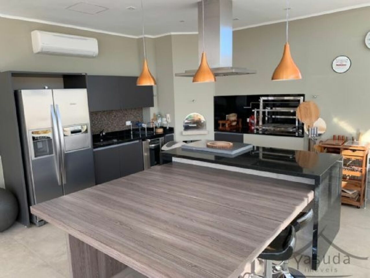 Area Externa equipada com cozinha da Kitchens, lava-louças, refrigeradores com dispenser de agua e gelo, churrasqueira e forno a lenha.